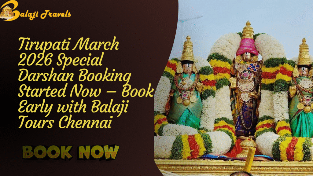 Tirupati March 2026 Special Darshan booking is now open. Book your darshan slots early to avoid rush and enjoy a smooth, hassle-free pilgrimage.