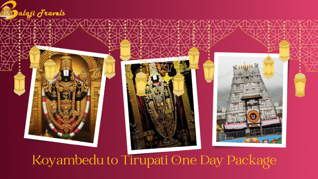 Koyambedu to Tirupati One Day Package with Balaji Tours. AC cars, doorstep pickup, expert drivers & hassle-free Balaji Darshan in one day