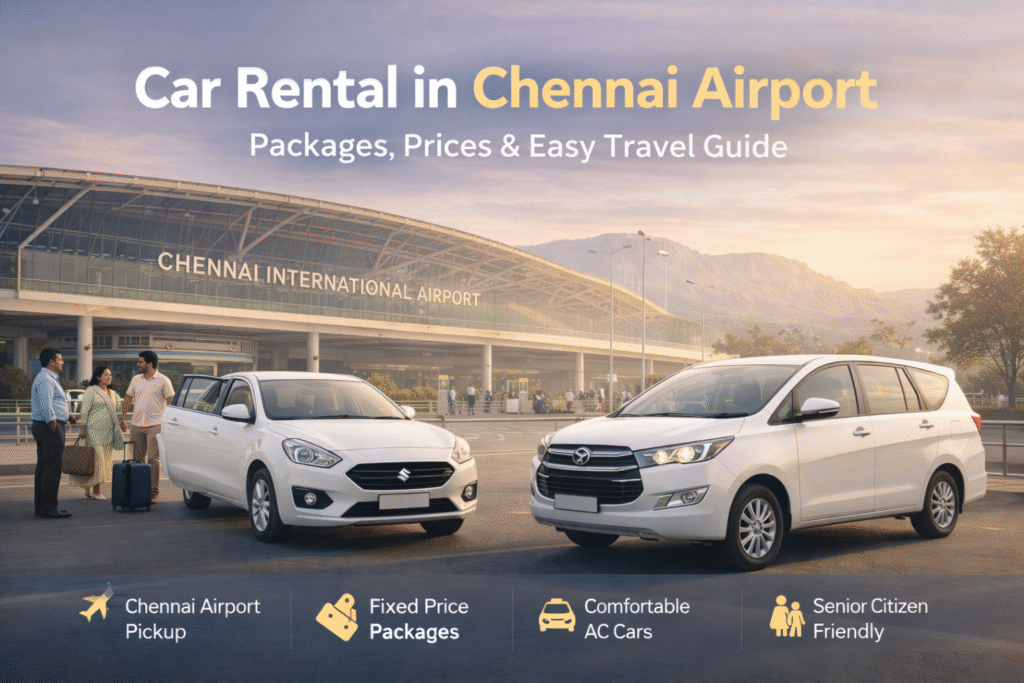 Car Rental in Chennai Airport with fixed-price packages, airport pickup, clean AC cars, driver allowance, vehicle options, and Tirupati trip support.