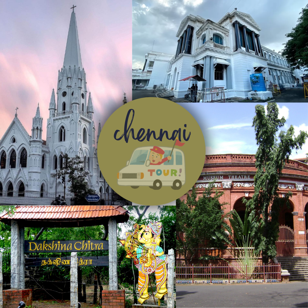 Parthasarathy Temple, Valluvar Kottam, Government Museum, Guindy National Park, DakshinaChitra, Santhome Cathedral Basilica, Fort St. George, Kapaleeshwar Temple, Saint Thomas Church.