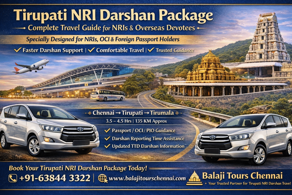 For organised, reliable, and comfortable Tirupati NRI Darshan travel, Balaji Tours Chennai continues to be a dependable choice for devotees visiting from across the globe.