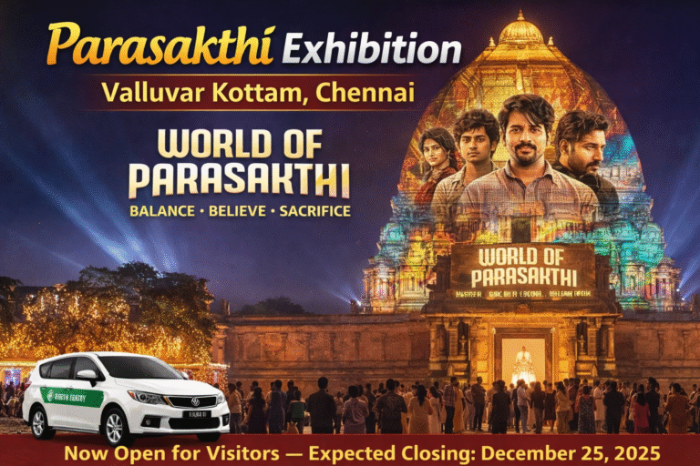 • Apart from permanent tourist places, Chennai also hosts temporary exhibitions like Parasakthi World, showing the city’s evolving cultural side.